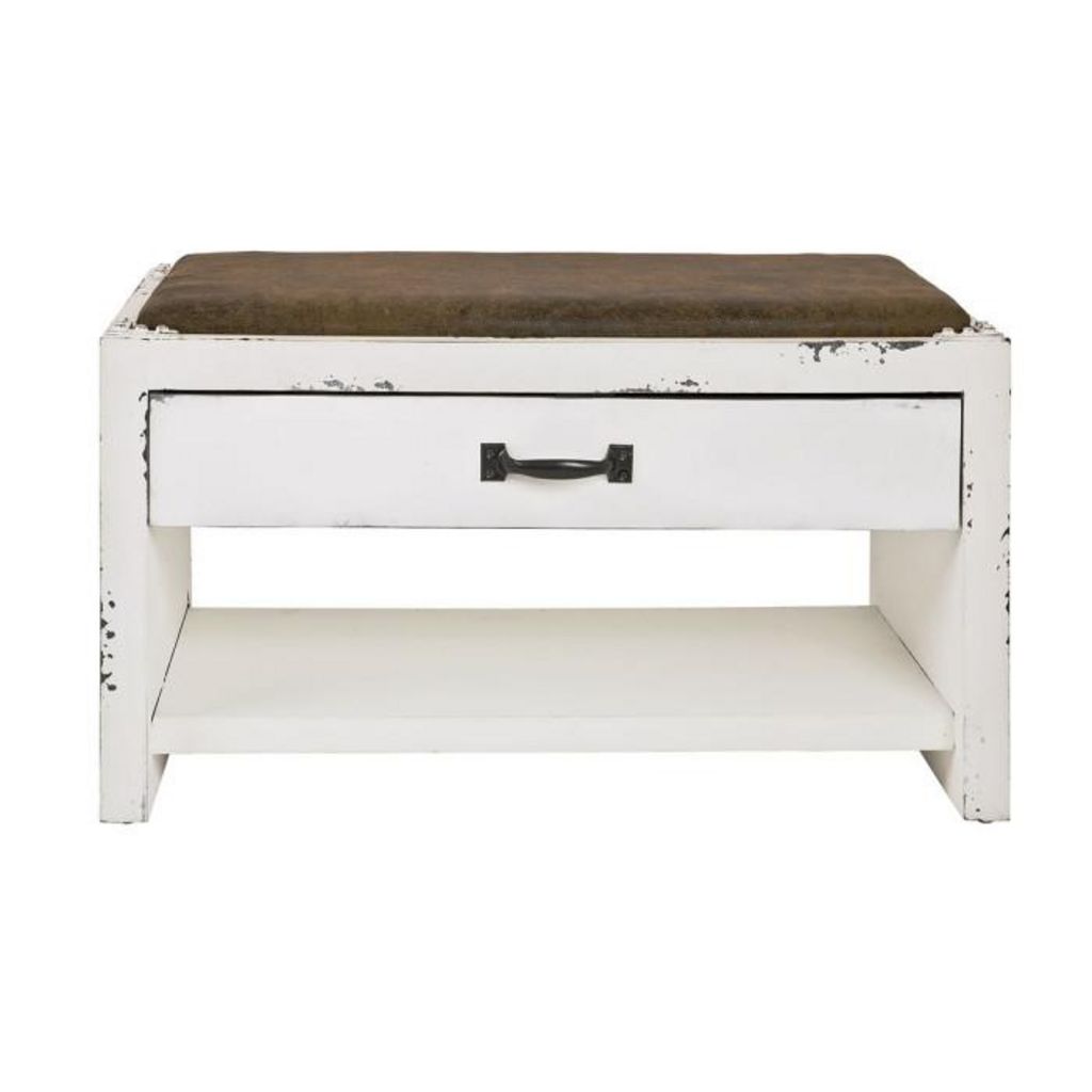 Informations Techniques : Dimensions : L. 72 x l. 40 x H. 43 cm Matières : MDF & Tissu Spécificités : Original & Vintage Range Chaussures & Assise Assise en Tissu Aspect Cuir 1 Niveau 1 Tiroir Livré Monté Facile d'Entretien & d'Utilisation Nombre de colis : 1 Poids : 10,35 kg Couleur : Blanc & Ma