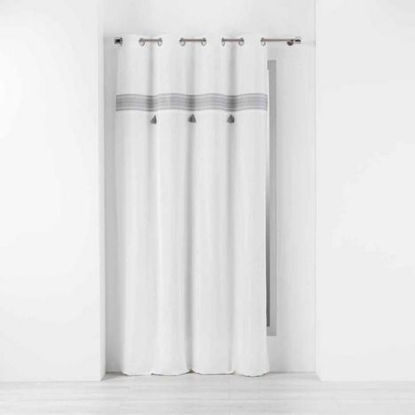 Informations Techniques : Dimensions : L. 140 x H. 240 cm Matière : Coton Spécificités : Pratique & Tendance Rideau à Oeillets Effet Brodé A Pompons 8 Oeillets Prêt à Poser Poids : 0,67 kg Couleur : Gris