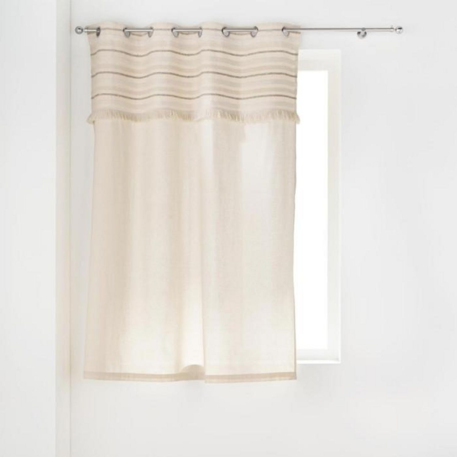 Informations Techniques : Dimensions : L. 140 x H. 180 cm Matière : 100% Coton Spécificités : Déco & Utile Rideau 8 œillets Avec franges Label Oeko-Tex Conseil d'entretien : Lavage à la main Pas de séchage en machine Repassage à 110° Poids : 0,77 kg Couleur : Naturel