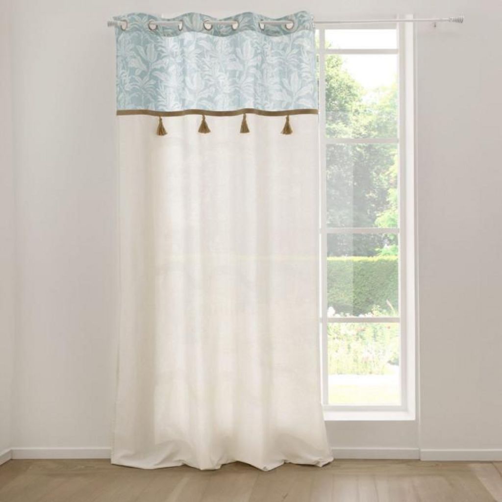 Informations Techniques : Dimensions : L. 140 x H. 240 cm Matières : 67% Coton & 33% Polyester Spécificités : Déco & Utile Rideau 8 œillets Imprimé végétal Avec pompons Label Oeko-Tex Conseil d'entretien : Lavage à 30° Pas de séchage en machine Repassage à 110° Poids : 0,83 kg Couleur : Menthe