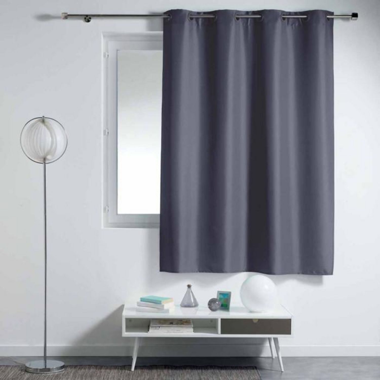 Informations Techniques : Dimensions : L. 140 x H. 180 cm Matière : Polyester Spécificités : Type de fixation : à oeillets Rideau uni Poids : 0,620 kg Couleur : Béton