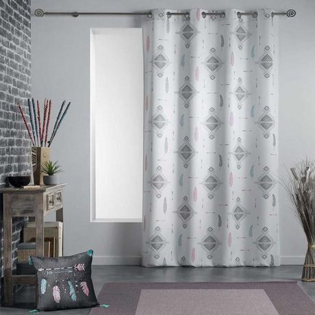 Informations Techniques : Dimensions : L. 140 x H. 260 cm Matière : Polyester Spécificités : Original & Élégant 8 oeillets ronds en coloris argent Imprimé: Aztéque, plumes & flèches Couleur : Blanc