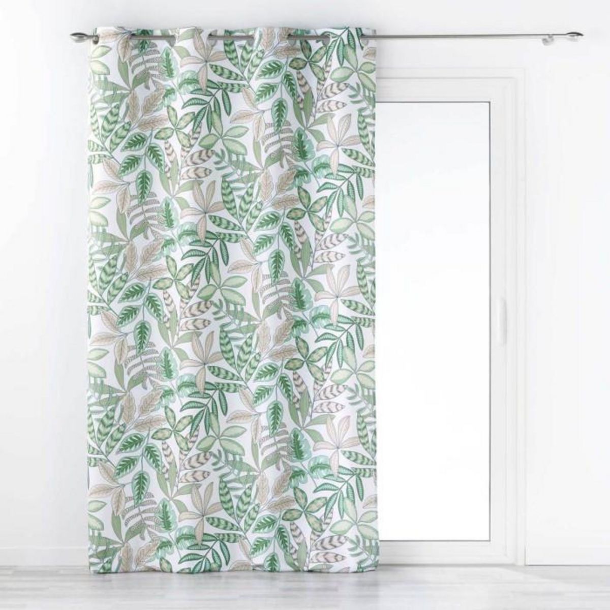 Informations Techniques : Dimensions : L. 260 x l. 140 cm Matière : 100% Polyester Spécificités : Tendance & Utile Rideau à oeillets Imprimé feuille Avec 8 oeillets Forme rectangulaire Poids : 0,6 kg Couleur : Vert