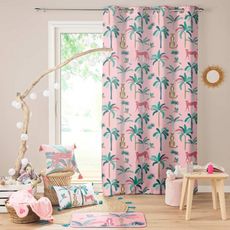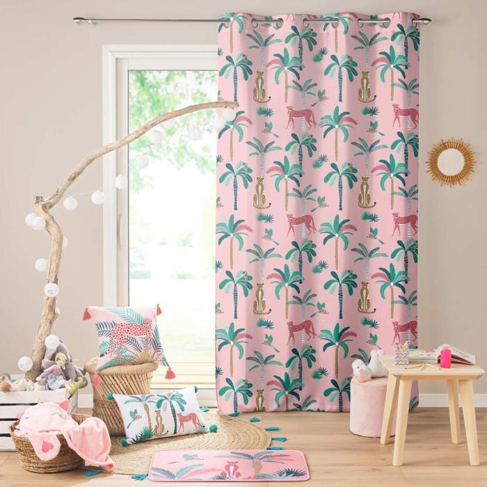 Informations Techniques : Dimensions : L. 140 x H. 260 cm Matière : Polyester Spécificités : Déco & Coloré Rideau enfant Imprimé jungle Poids : 0,65 kg Couleur : Rose