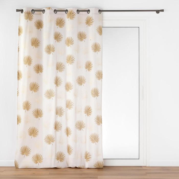 Rideau à Œillets Imprimé Métallisé Lotus 140x240cm Ocre
