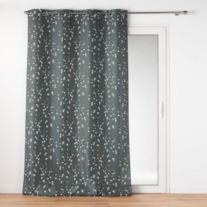 Rideau à Œillets Imprimé Sakura 140x260cm Anthracite