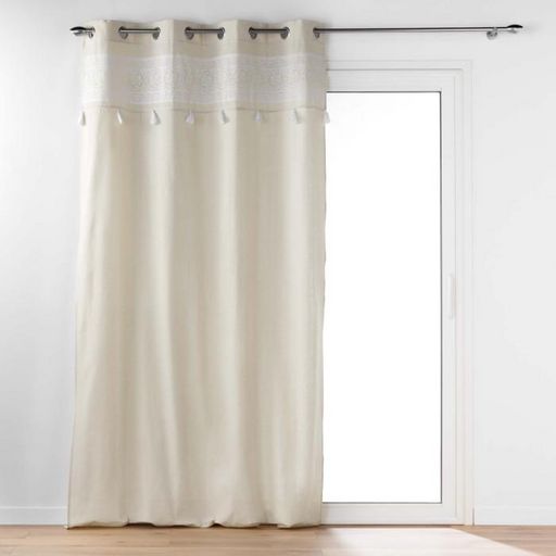 Informations Techniques : Dimensions : L. 140 x H. 240 cm Matières : Polyester, Coton, Viscose, Polyamide & Acrylique Spécificités : Déco & Esthétique Rideau polycoton Motif imprimé Avec pompons 8 œillets Forme rectangulaire Entretien : Lavage à 30° Pas de séchage en machine Repassage à 110° Certifi