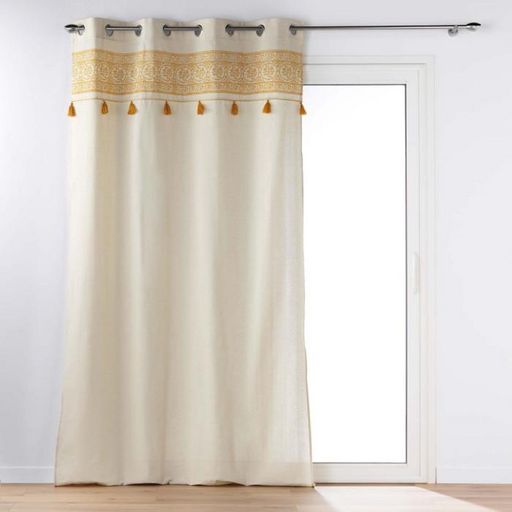 Informations Techniques : Dimensions : L. 140 x H. 240 cm Matières : Polyester, Coton, Viscose, Polyamide & Acrylique Spécificités : Déco & Esthétique Rideau polycoton Motif imprimé Avec pompons 8 œillets Forme rectangulaire Entretien : Lavage à 30° Pas de séchage en machine Repassage à 110° Certifi