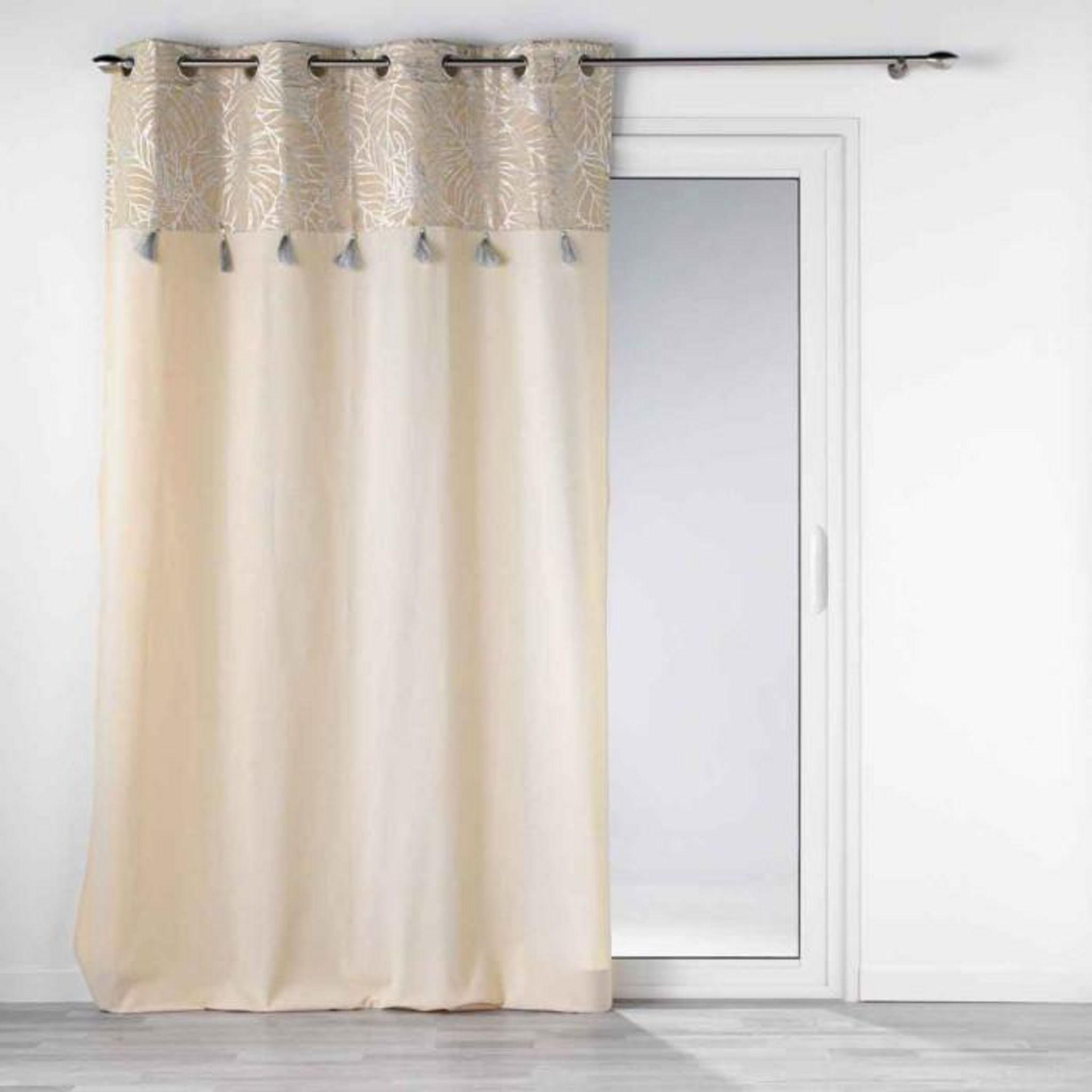 Informations Techniques : Dimensions : L. 140 x H. 240 cm Produit Packagé : L. 27 x l. 2 x H. 45 cm Matières : 76% Coton & 24% Polyester Spécificités : Pratique & Utile Rideau à Oeillets Forme Rectangulaire Imprimé Métallisé Avec Pompons Poids : 0,915 kg Couleur : Argent & Naturel