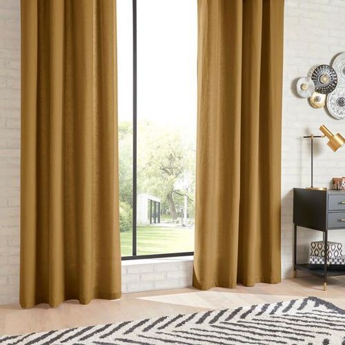 Informations Techniques : Dimensions : L. 135 x l. 0,5 x H. 240 cm Matières : Coton & Métal Spécificités : Pratique & Tendance Rideau à oeillets 8 oeillets Forme rectangulaire Poids : 0,7 kg Couleur : Camel