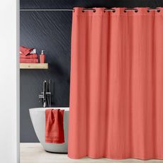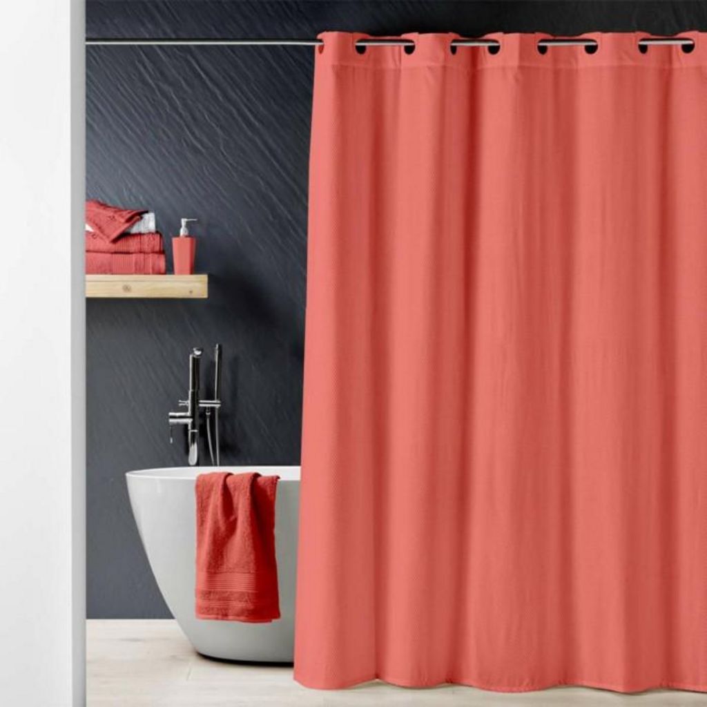 Informations Techniques : Dimensions : L. 180 x H. 200 cm Matière : Microfibre Spécificités : Pratique & Utile Rideau de Douche Forme Rectangulaire Effet Gaufré 10 Oeillets Clipsables Installation Facile Poids : 0,483 kg Couleur : Terracotta