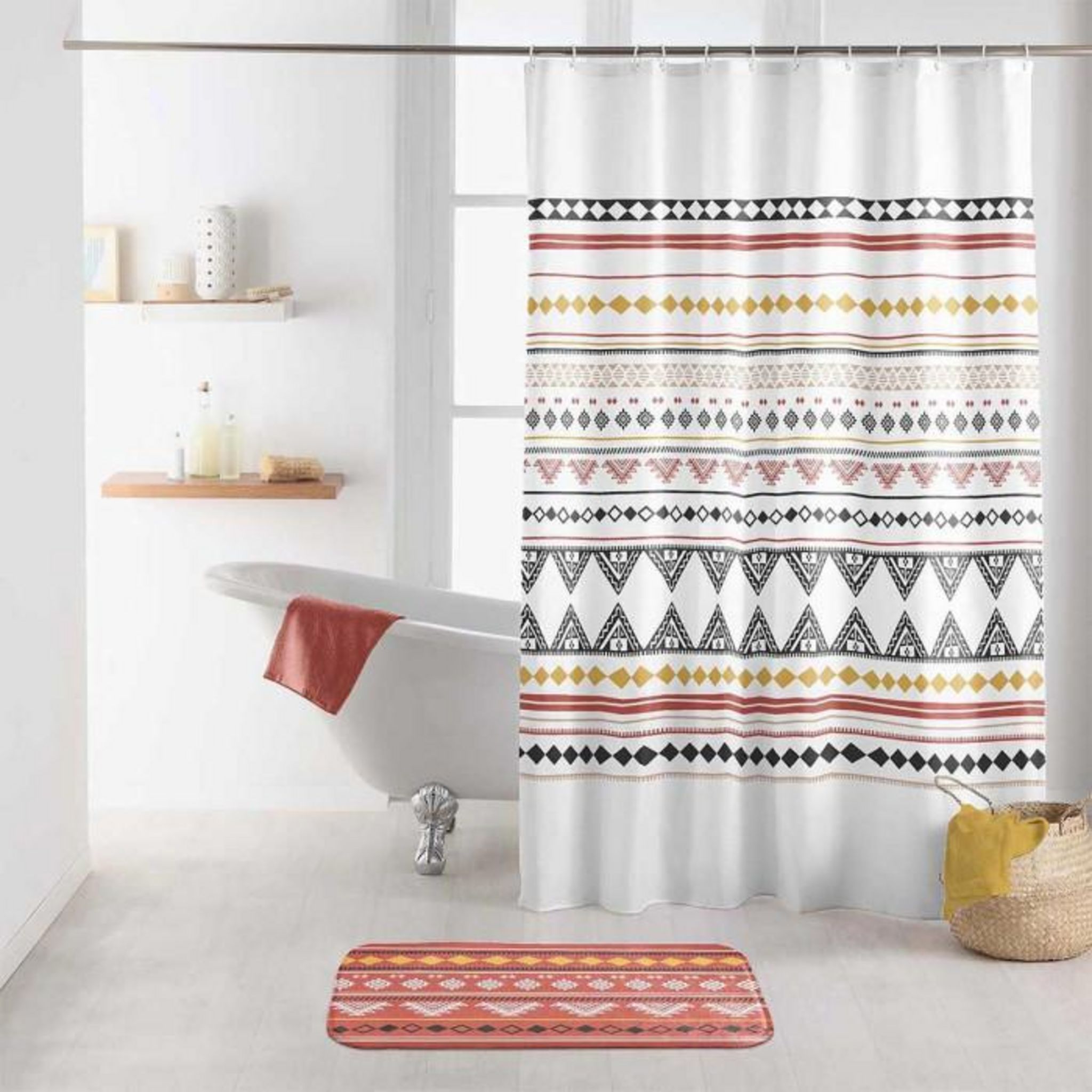 Informations Techniques : Dimensions : L. 180 x H. 200 cm Produit Packagé : L. 23 x l. 3 x H. 39 cm Matière : 100% Polyester Spécificités : Design & Pratique Rideau de Douche Forme Rectangulaire Avec Crochets A Motifs Poids : 0,46 kg Couleur : Blanc
