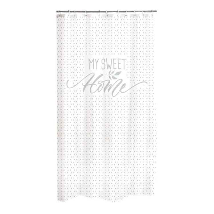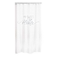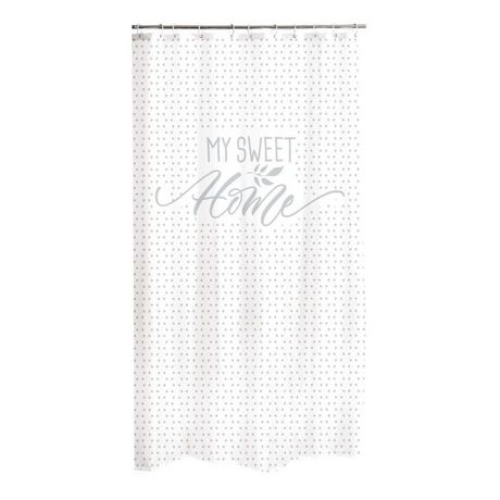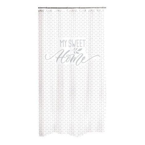 Informations Techniques : Dimensions : L. 180 x H. 200 cm Matière : Polyester Spécificités : Design & Pratique Inscription My sweet home Facile d'entretien & d'utilisation Couleur : Blanc & Gris