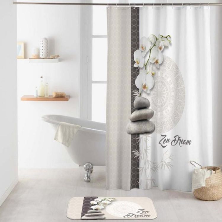 Informations Techniques : Dimensions : L. 180 x H. 200 cm Matière : Polyester Spécificités : Pratique & Déco Motifs : Galet, Rosace, Orchidée Esprit Zen Poids : 0,460 kg Couleur : Blanc