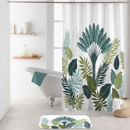 Informations Techniques : Dimensions : L. 180 x H. 200 cm Produit Packagé : L. 23 x l. 1 x H. 42 cm Matière : 100% Polyester Spécificités : Pratique & Utile Rideau de Douche 12 Anneaux inclus Forme Rectangulaire Motif Imprimé Poids : 0,46 kg Couleur : Vert