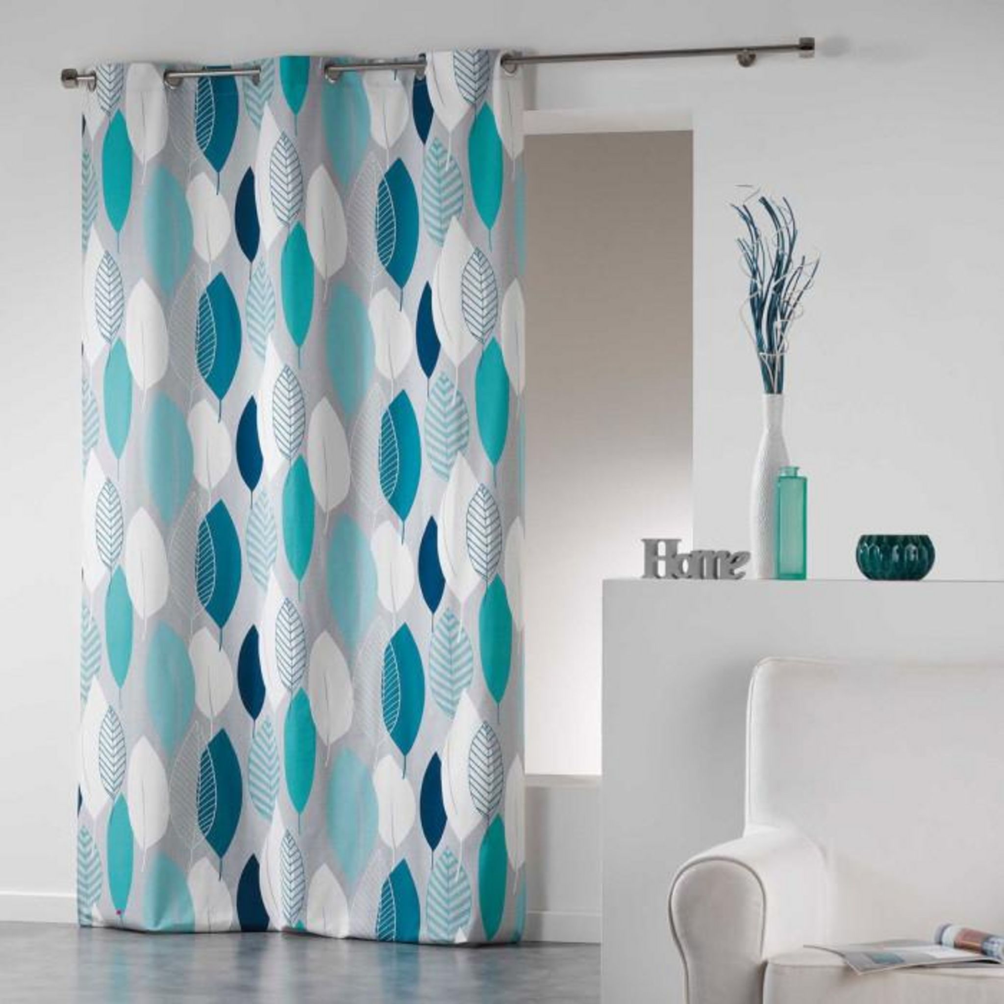 Rideau Imprimé Leafy 140x240cm Bleu