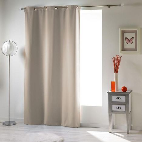 Informations Techniques : Dimensions : L. 135 x H. 240 cm Matière : Polyester Spécificités : Tendance & Pratique Rideau à Oeillets Occultant Design Uni Forme Rectangulaire Poids : 0,619 kg Couleur : Ivoire