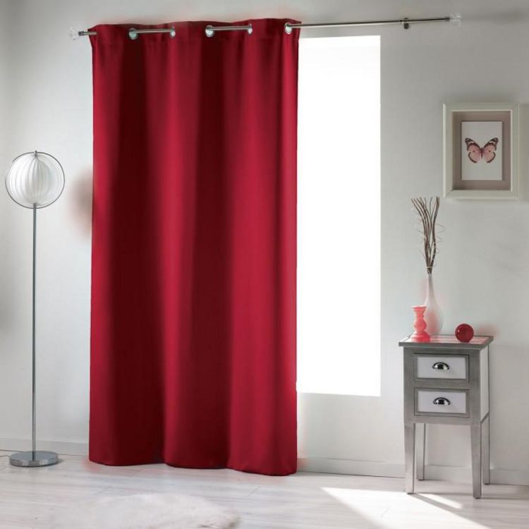 Rideau occultant rouge 140x240. Isole du bruit, du froid et de la chaleur. Stoppe la lumière. &OElig,illets facilitant la pose. 100% polyester.