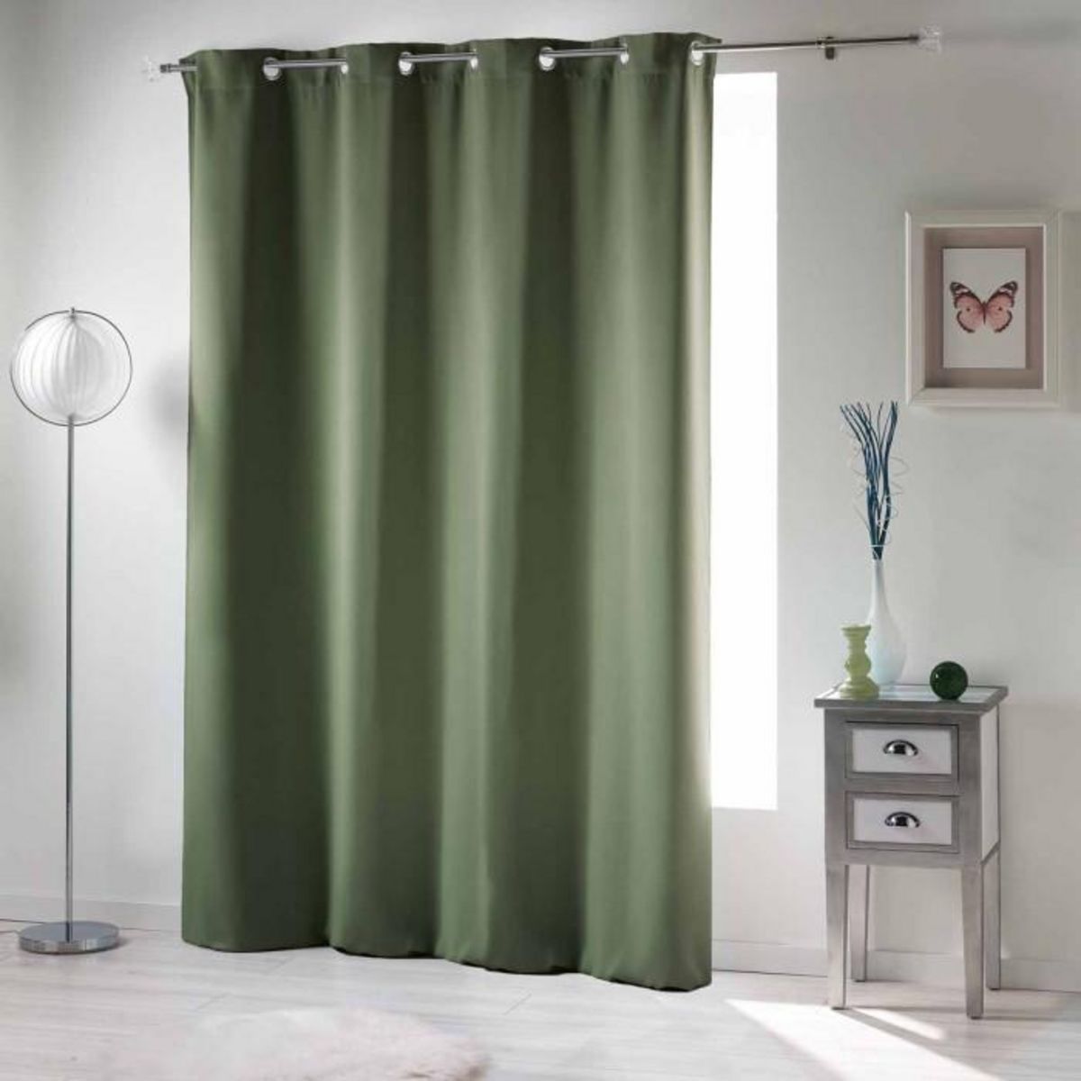 Informations Techniques : Dimensions : L. 135 x H. 240 cm Matière : Polyester Spécificités : Grand & Coloré Rideau Occultant Contient 8 Oeillets Forme Rectangulaire Couleur : Kaki