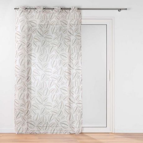 Informations Techniques : Dimensions : L. 140 x H. 240 cm Matière : 100% Polyester Spécificités : Déco & Élégant Rideau voilage 8 œillets Imprimé feuille Finition voile sablé Entretien : Lavage à 30° Pas de séchage en machine Repassage à 110° Poids : 0,3 kg Couleur : Naturel