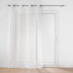 Informations Techniques : Dimensions : L. 140 x H. 240 cm Matière : 100% Polyester Spécificités : Chic & Durable Rideau voilage 8 œillets Imprimé métallisé Finition voile sablé Résistant aux plis Entretien : Lavage à 30° Pas de séchage en machine Repassage à 110° Poids : 0,3 kg Couleur : Or Rose