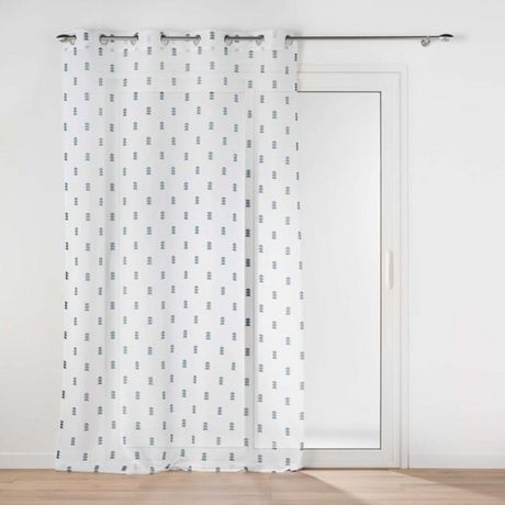Informations Techniques : Dimensions : L. 140 x H. 240 cm Matière : 100% Polyester Spécificités : Léger & Durable Rideau voilage Imprimé géométrique 8 œillets Finition voile sablé Résistant aux plis Entretien : Lavage à 30° Pas de séchage en machine Repassage à 110° Poids : 0,3 kg Couleur : Bleu Pét