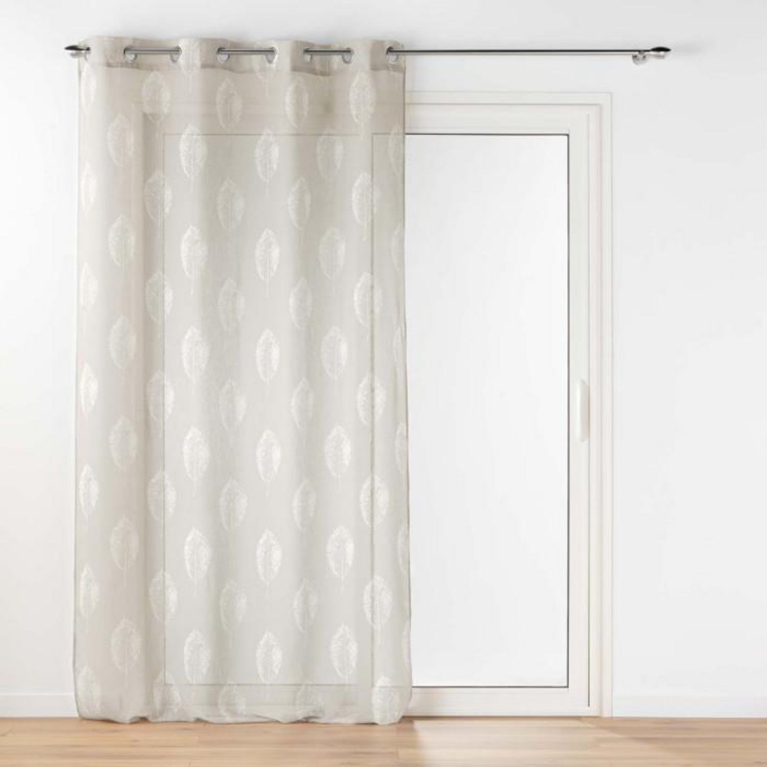 Informations Techniques : Dimensions : L. 140 x H. 240 cm Matière : 100% Polyester Spécificités : Déco & Moderne Rideau voilage Avec 8 œillets Imprimé feuille Effet lin tissé Entretien : Lavage à 30° Pas de séchage en machine Repassage à 110° Poids : 0,52 kg Couleur : Lin