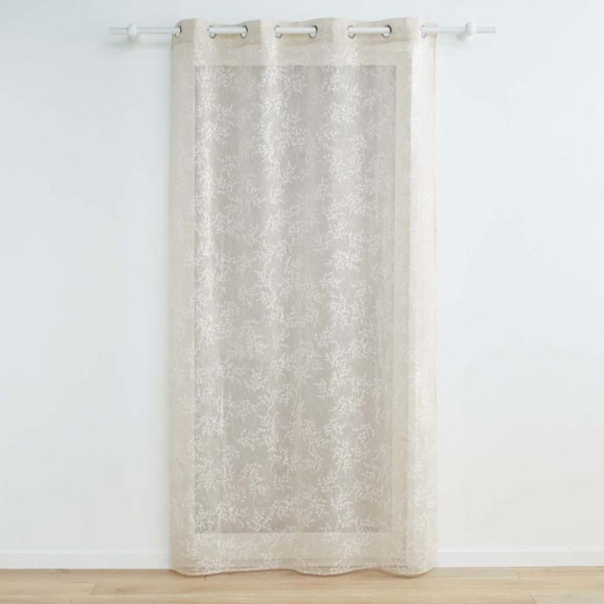 Informations Techniques : Dimensions : L. 140 x H. 240 cm Matière : 100% Polyester Spécificités : Déco & Légèreté Rideau voilage Avec 8 œillets Motifs végétaux Voile tissé appliqué Label Oeko-Tex Entretien : Lavage à 30° Pas de séchage en machine Pas de repassage Poids : 0,51 kg Couleur : Taupe