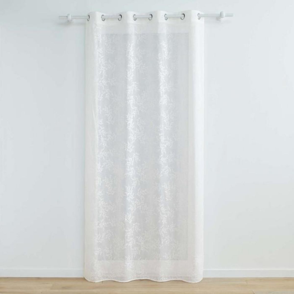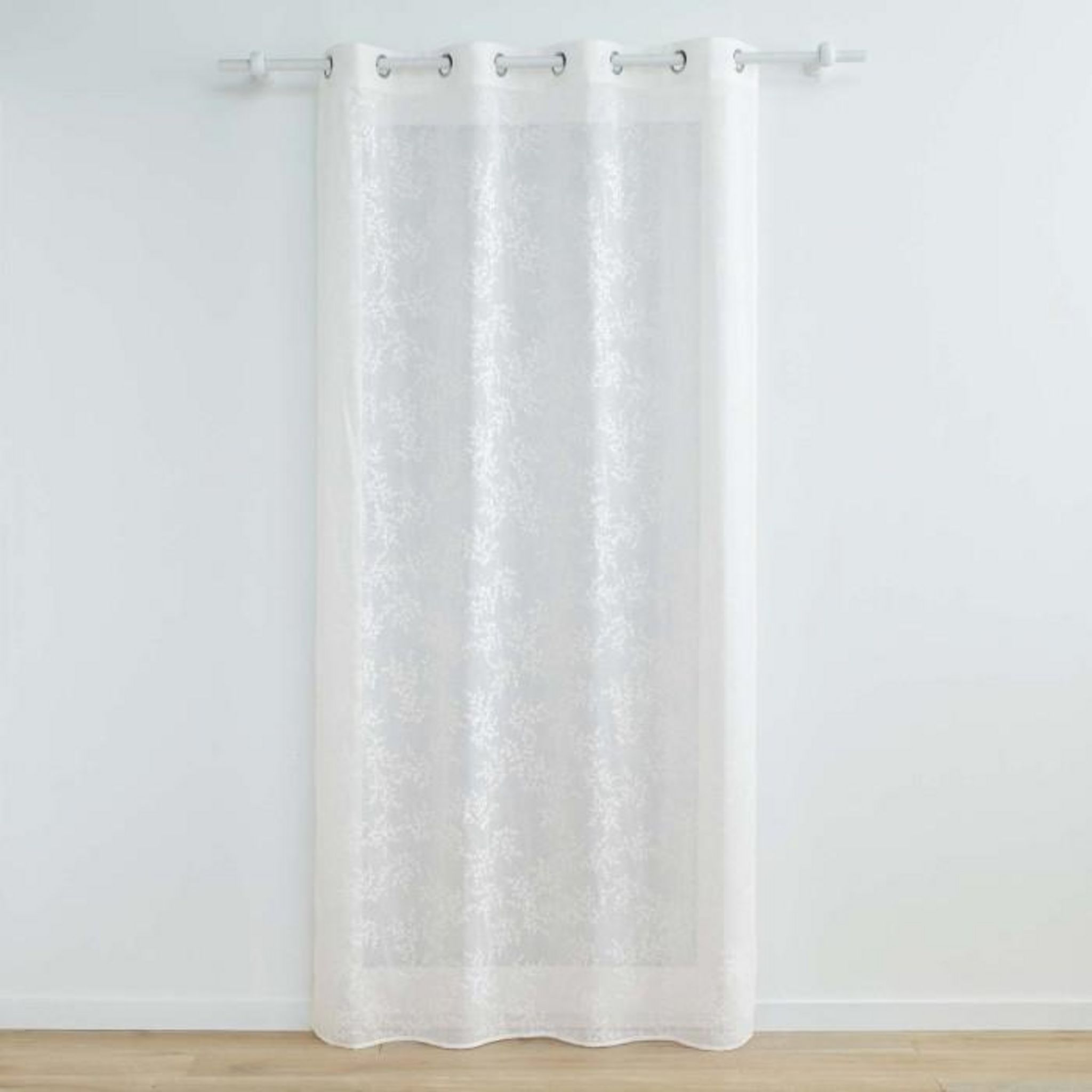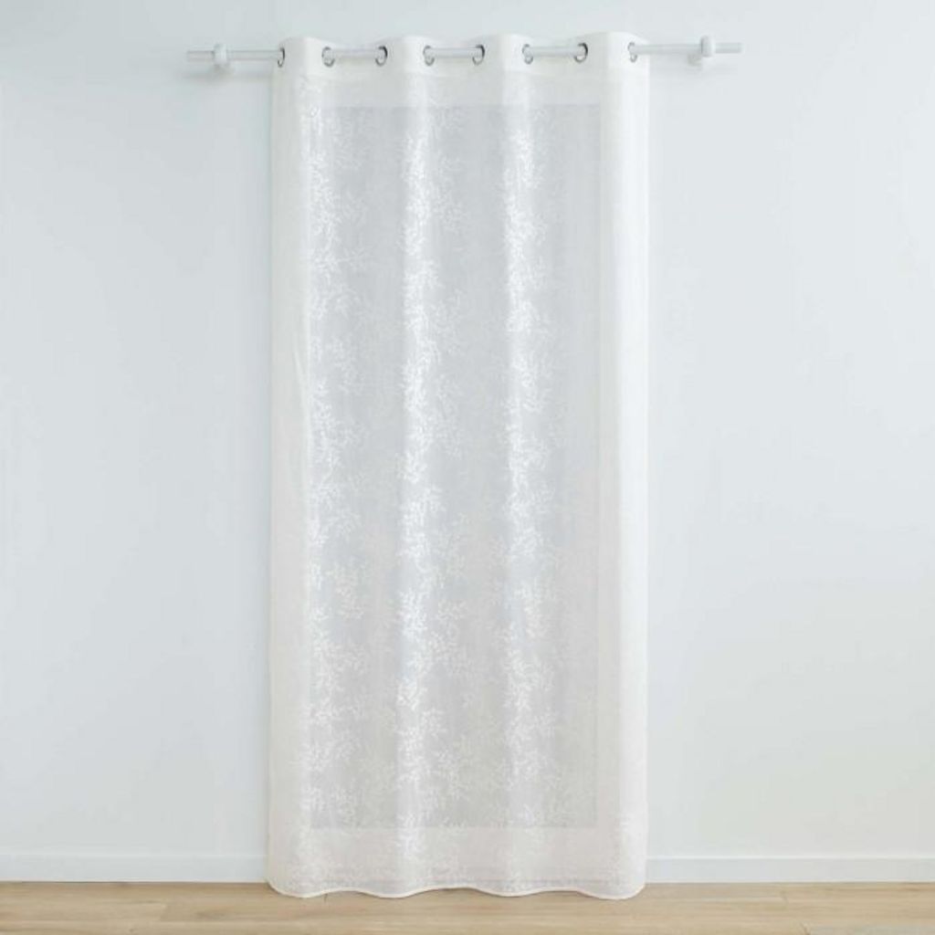Informations Techniques : Dimensions : L. 140 x H. 280 cm Matière : 100% Polyester Spécificités : Déco & Légèreté Rideau voilage Avec 8 œillets Motifs végétaux Voile tissé appliqué Label Oeko-Tex Entretien : Lavage à 30° Pas de séchage en machine Pas de repassage Poids : 0,58 kg Couleur : Blanc