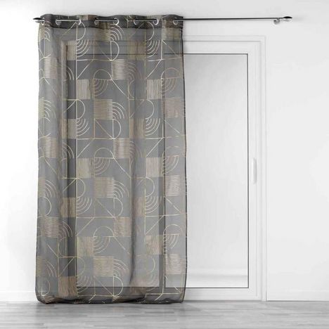Informations Techniques : Dimensions : L. 140 x H. 240 cm Produit Packagé : L. 26 x l. 1 x H. 40 cm Matière : 100% Polyester Spécificités : Pratique & Tendance Rideau Voilage à Oeillets Forme Rectangulaire Imprimé Métallisé Poids : 0,395 kg Couleur : Anthracite & Or