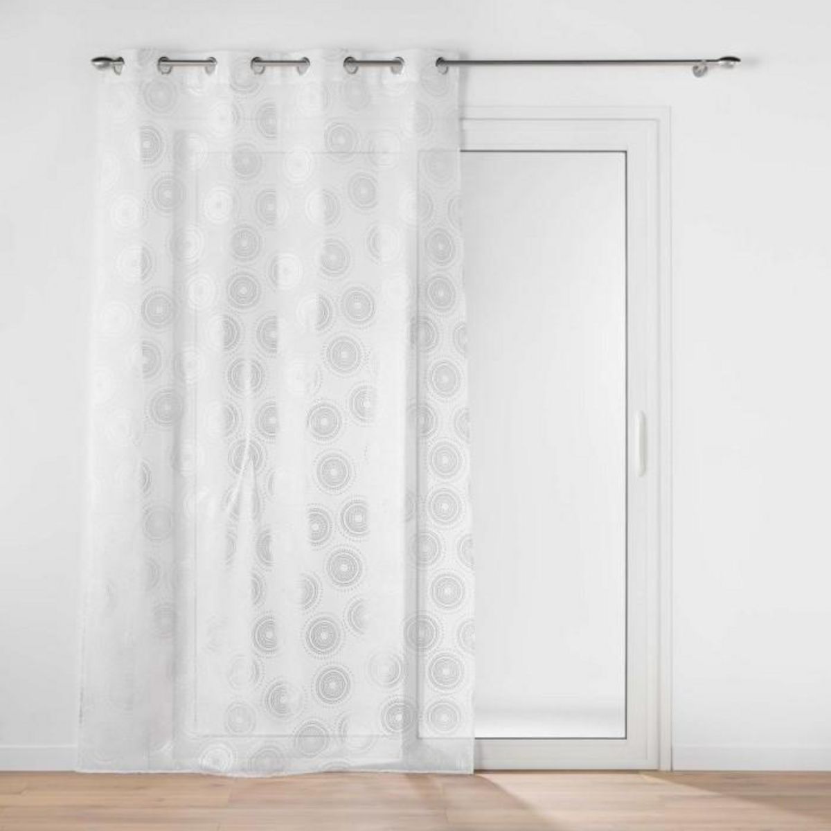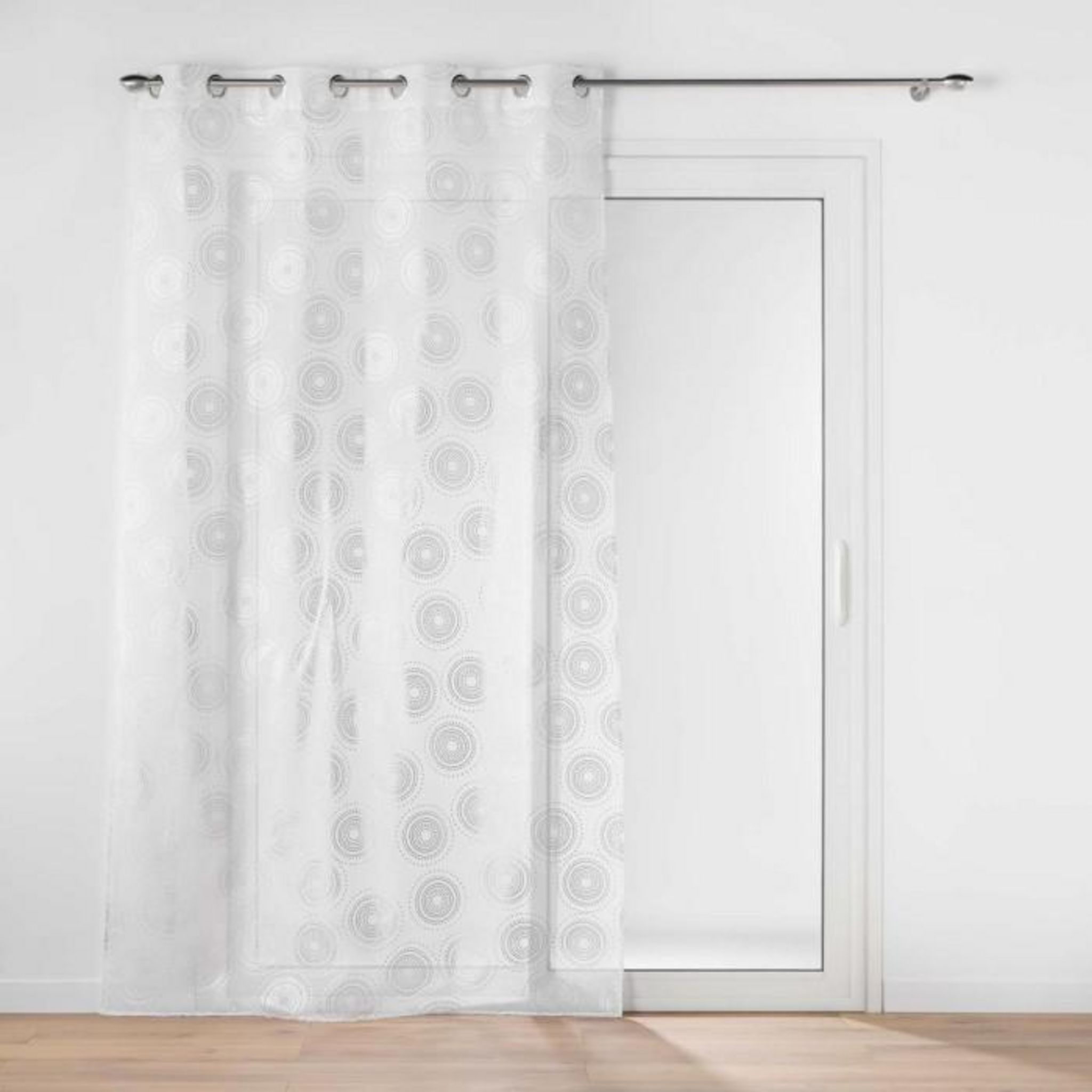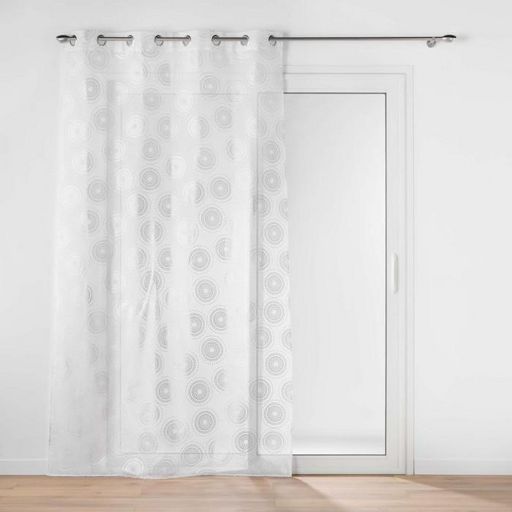Informations Techniques : Dimensions : L. 140 x H. 240 cm Matière : 100% Polyester Spécificités : Élégant & Durable Rideau voilage 8 œillets Imprimé cercles métallisés Finition voile sablé Résistant aux plis Entretien : Lavage à 30° Pas de séchage en machine Repassage à 110° Poids : 0,29 kg Couleur