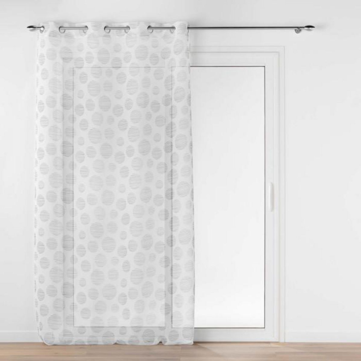 Informations Techniques : Dimensions : L. 137 x H. 240 cm Matière : 100% Polyester Spécificités : Déco & Moderne Rideau voilage Avec 8 œillets Imprimé rond Finition voile sablé Entretien : Lavage à 30° Pas de séchage en machine Pas de repassage Poids : 0,29 kg Couleur : Gris