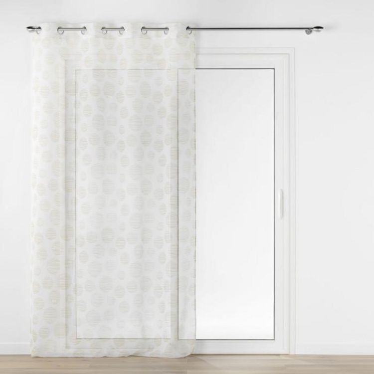 Informations Techniques : Dimensions : L. 137 x H. 280 cm Matière : 100% Polyester Spécificités : Déco & Moderne Rideau voilage Avec 8 œillets Imprimé rond Finition voile sablé Entretien : Lavage à 30° Pas de séchage en machine Pas de repassage Poids : 0,34 kg Couleur : Naturel