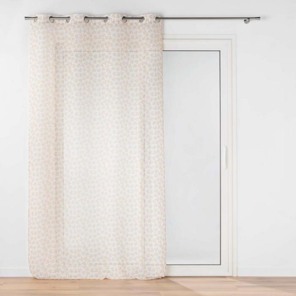 Informations Techniques : Dimensions : L. 140 x H. 240 cm Matière : 100% Polyester Spécificités : Déco & Utile Rideau voilage Avec 8 œillets Imprimé végétal Finition voile sablé Label Oeko-Tex Entretien : Lavage à 30° Pas de séchage en machine Repassage à 110° Poids : 0,31 kg Couleur : Ocre
