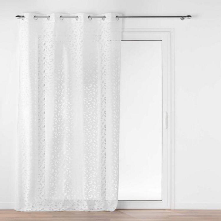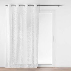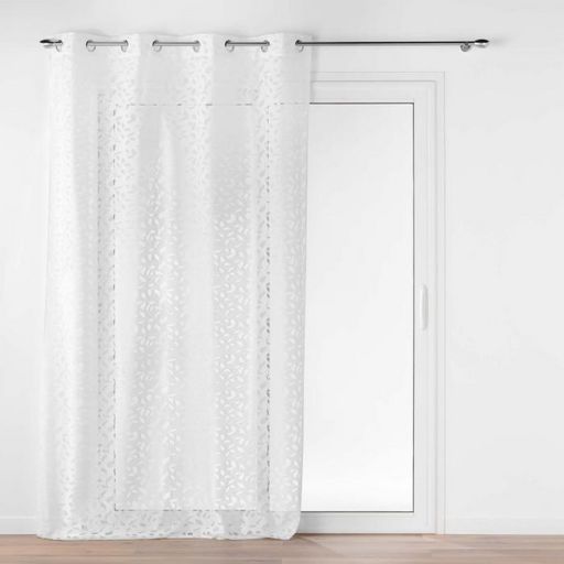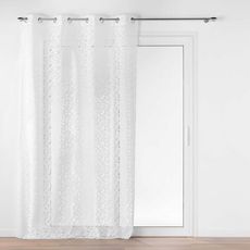 Informations Techniques : Dimensions : L. 140 x H. 280 cm Matière : 100% Polyester Spécificités : Déco & Fantaisie Rideau voilage Avec 8 œillets Motif feuille en maille Entretien : Lavage à 30° Pas de séchage en machine Pas de repassage Poids : 0,48 kg Couleur : Blanc