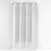 Informations Techniques : Dimensions : L. 140 x H. 240 cm Matière : Tissu Spécificités : Pratique & Utile Rideau Voilage à Oeillets Forme Rectangulaire Prêt-à-Poser Contient 8 Oeillets Effet Tissé Motif Rayé Poids : 0,504 kg Couleur : Blanc