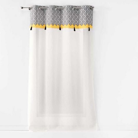 Informations Techniques : Dimensions : L. 140 x H. 240 cm Produit Packagé : L. 26 x l. 2 x H. 43 cm Matière : 100% Polyester Spécificités : Pratique & Utile Rideau Voilage à Oeillets Forme Rectangulaire A Motifs Avec Pompons Poids : 0,38 kg Couleur : Blanc, Gris & Jaune