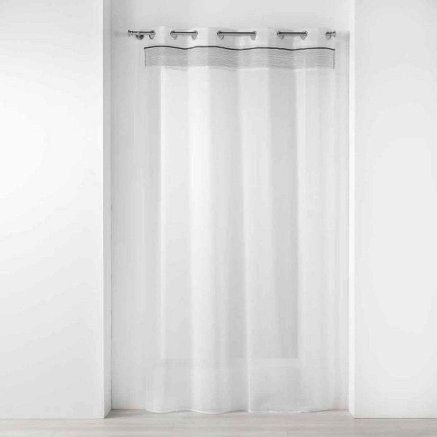 Informations Techniques : Dimensions : L. 140 x H. 280 cm Matière : Tissu Spécificités : Pratique & Utile Rideau Voilage 8 Oeillets Prêt-à-Poser Motif Imprimé Jacquard sur le dessus Poids : 0,428 kg Couleur : Blanc