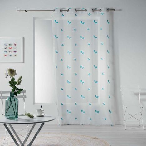 Informations Techniques : Dimensions : L. 140 x H. 240 cm Matière : Polyester Spécificités : Design & Pratique Voile effet sablé Broderie papillons Facile d'entretien & d'utilisation Poids : 0.38 kg Couleur : Bleu