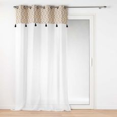 Informations Techniques : Dimensions : L. 140 x H. 240 cm Matière : 100% Polyester Spécificités : Déco & Tendance Rideau voilage 8 œillets Imprimé métallisé Avec pompons Finition voile sablé Entretien : Lavage à 30° Pas de séchage en machine Pas de repassage Poids : 0,42 kg Couleur : Beige & Noir
