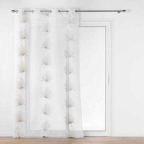 Informations Techniques : Dimensions : L. 140 x H. 240 cm Matière : 100% Polyester Spécificités : Déco & Fantaisie Rideau voilage Avec 8 œillets Motifs végétaux Voile sablé brodé Entretien : Lavage à 30° Pas de séchage en machine Pas de repassage Poids : 0,32 kg Couleur : Lin