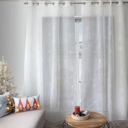 Rideau Voilage Brodé Noël 140x240cm Blanc & Argent