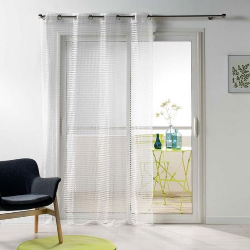 Informations Techniques : Dimensions : L. 140 x H. 240 cm Matière : Polyester Spécificités : Rideau Voilage en Maille Type de fixation : à oeillets Poids : 0,576 kg Couleur : Blanc