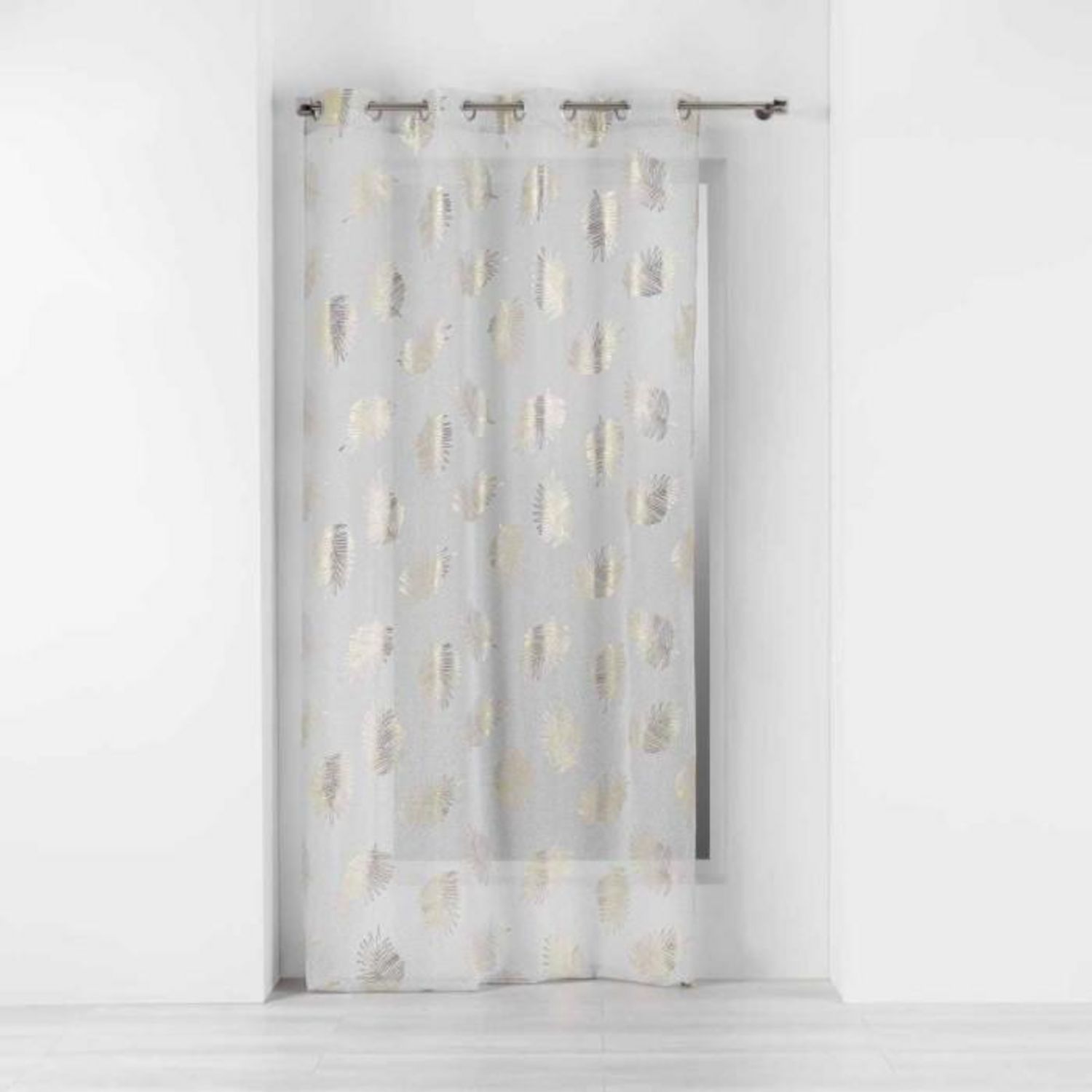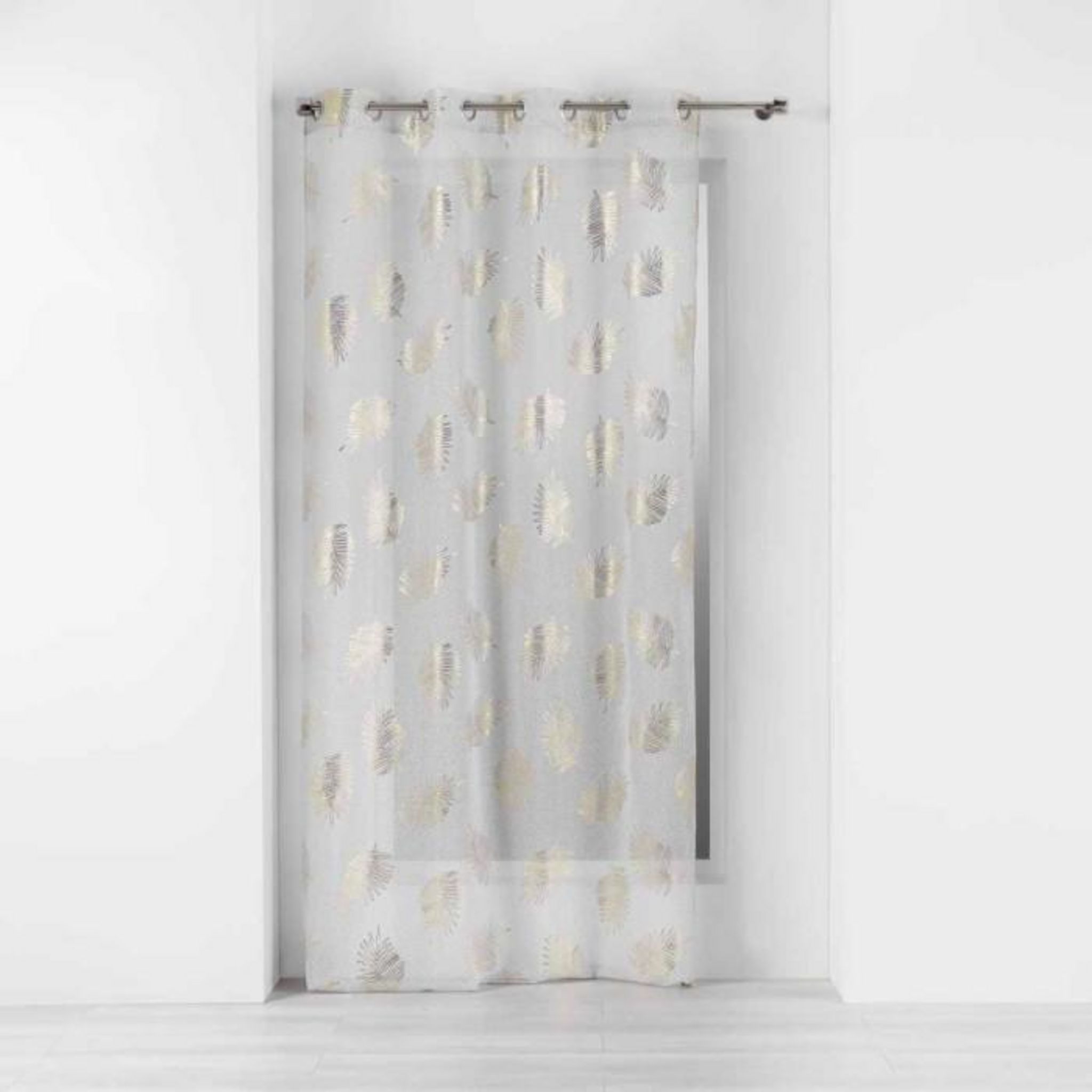 Informations Techniques : Dimensions : L. 240 x l. 140 cm Matière : 100% Polyester Spécificités : Tendance & Lumineux Rideau Voilage Prêt à Poser Forme Rectangulaire A Motifs Imprimé Métallisé Finition : 8 oeillets Poids : 0,302 kg Couleur : Or