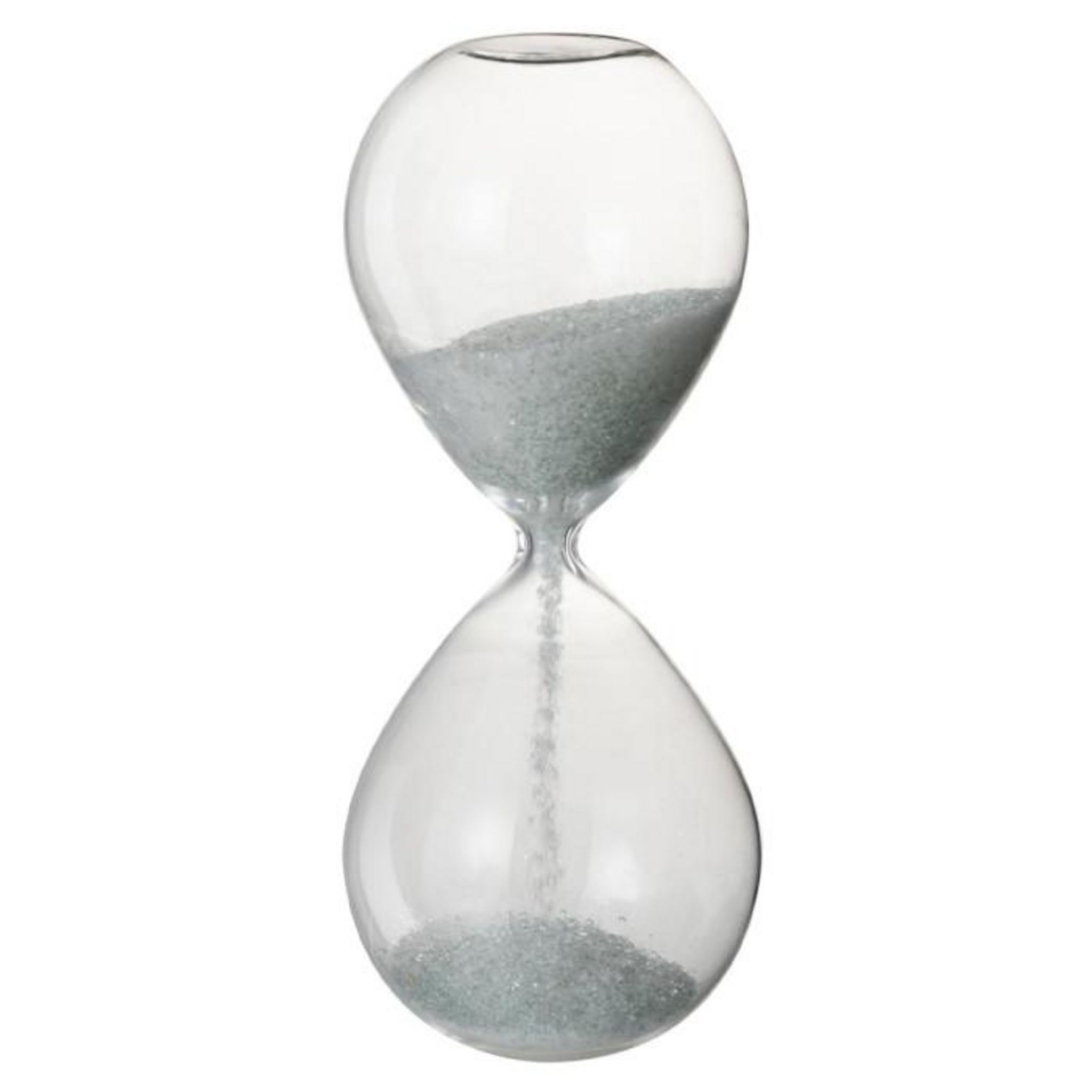 Informations Techniques : Dimensions : D. 10 x H. 25 cm Matière : Verre Spécificités : Pratique & Tendance Objet déco Forme Sablier Avec Perles Poids : 0,32 kg Couleur : Transparent & Blanc