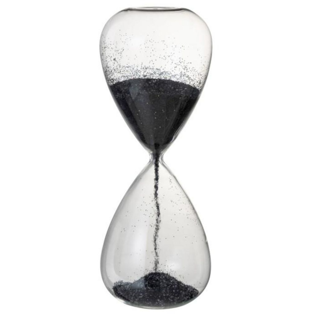 Informations Techniques : Dimensions : D. 15 x H. 40 cm Matière : Verre Spécificités : Pratique & Tendance Objet déco Forme Sablier Avec Perles Facile d'entretien & d'utilisation Poids : 1,2 kg Couleur : Transparent & Noir