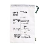 Informations Techniques : Dimensions : L. 19,5 x l. 1 x H. 32,2 cm Matières : Textile & Coton Spécificités : Pratique & Utile Sac à Vrac Gradué Lavable Lien de Serrage inclus Poids : 0,16 kg Couleur : Blanc