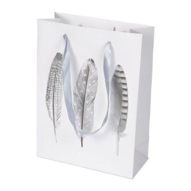 Sac Cadeau Imprimé Dark Feather 14cm Blanc