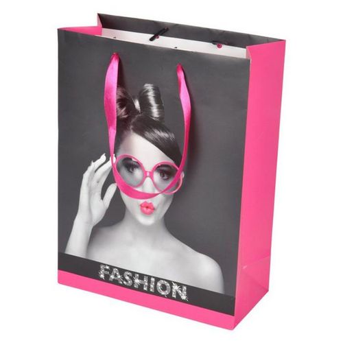 Sac Cadeau Imprimé Fashion 29cm Gris & Rose