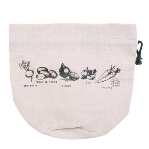 Informations Techniques : Dimensions : L. 19 x l. 26,5 x H. 19 cm Matières : Textile & Polyester Spécificités : Pratique & Utile Sac de Conservation Réutilisable Forme Carrée Idéal pour les Légumes Avec Lien de Serrage A Motifs Lavable à 30° Poids : 0,06 kg Couleur : Blanc